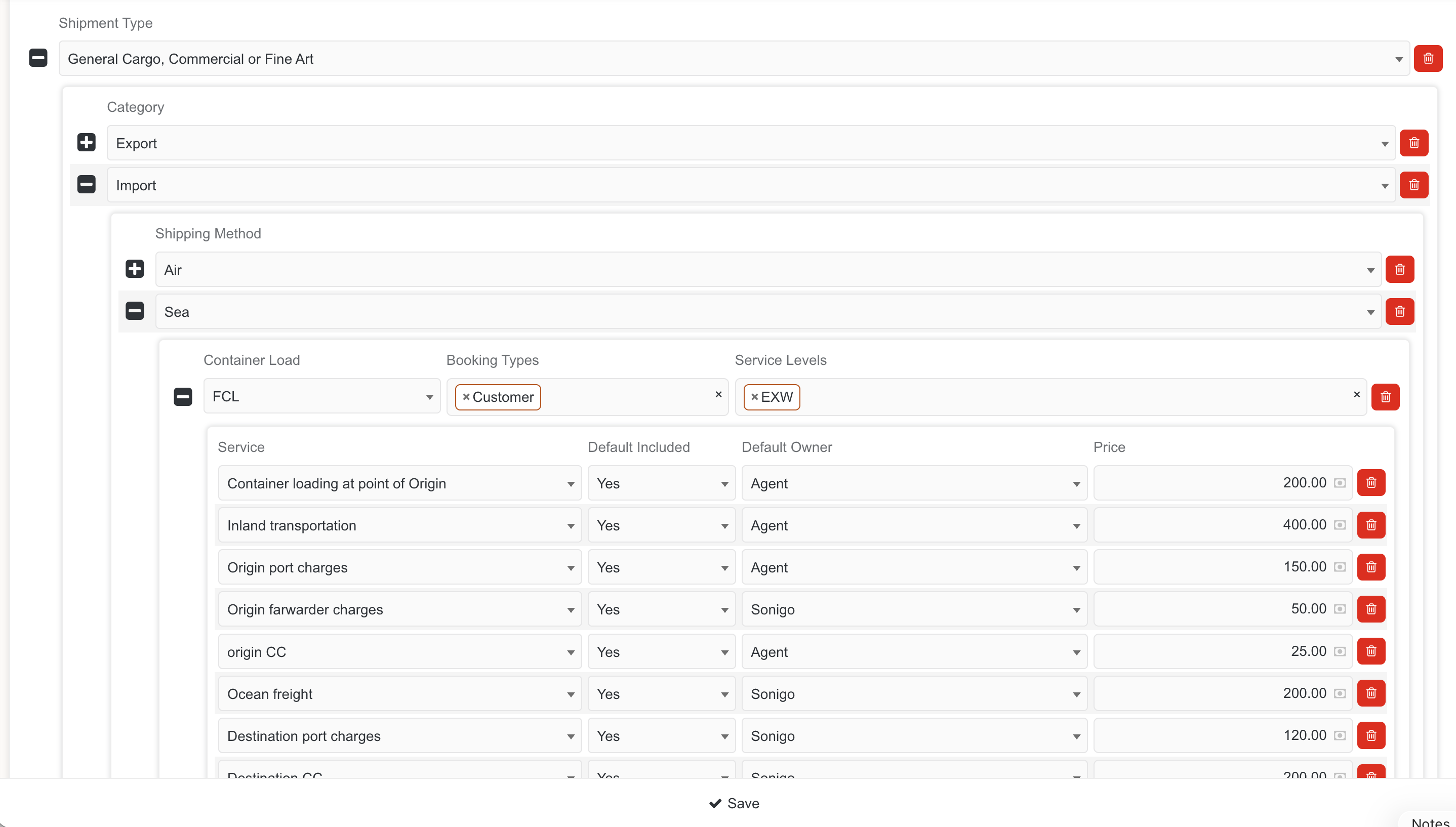 A transparent cost configuration system showing all service costs and profit margins.