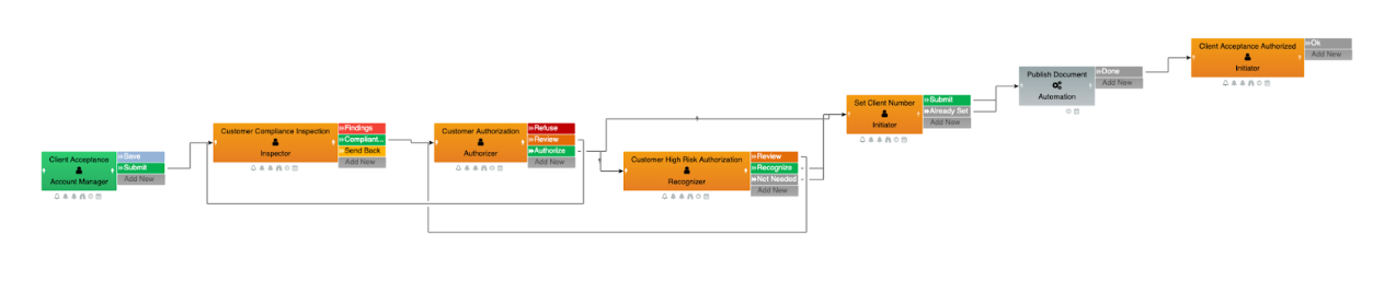 In complex banks, onboarding a corporate client often involves 7+ steps across departments: relationship managers, legal, compliance, and operations. There are documents to collect (like UBO declarations and incorporation papers), screenings to run, approvals to escalate — and each step needs tracking.