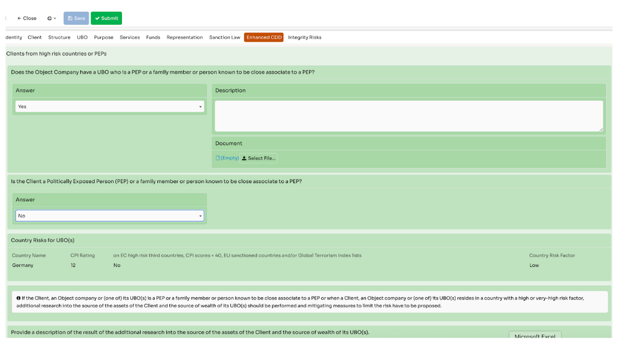 The system also adapts the document checklist based on client type, jurisdiction, or risk score. A corporate client from a high-risk jurisdiction may need to upload ownership charts, tax declarations, or third-party attestations — while a domestic individual client follows a lighter route.