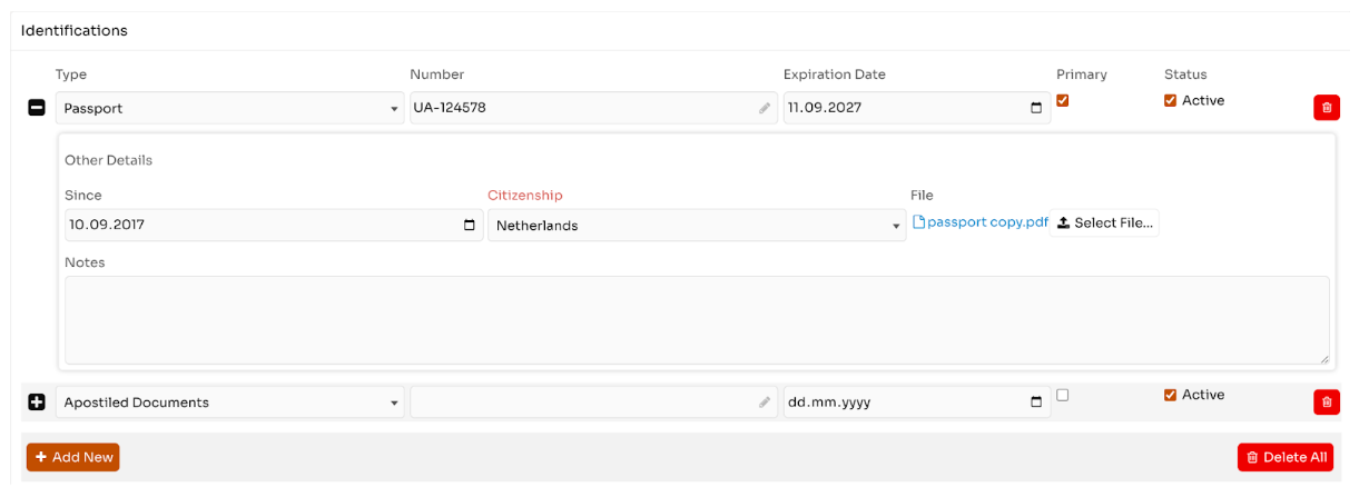 - If the user uploads a passport, the system will prompt them to enter the passport number, expiry date, and issuing country.
